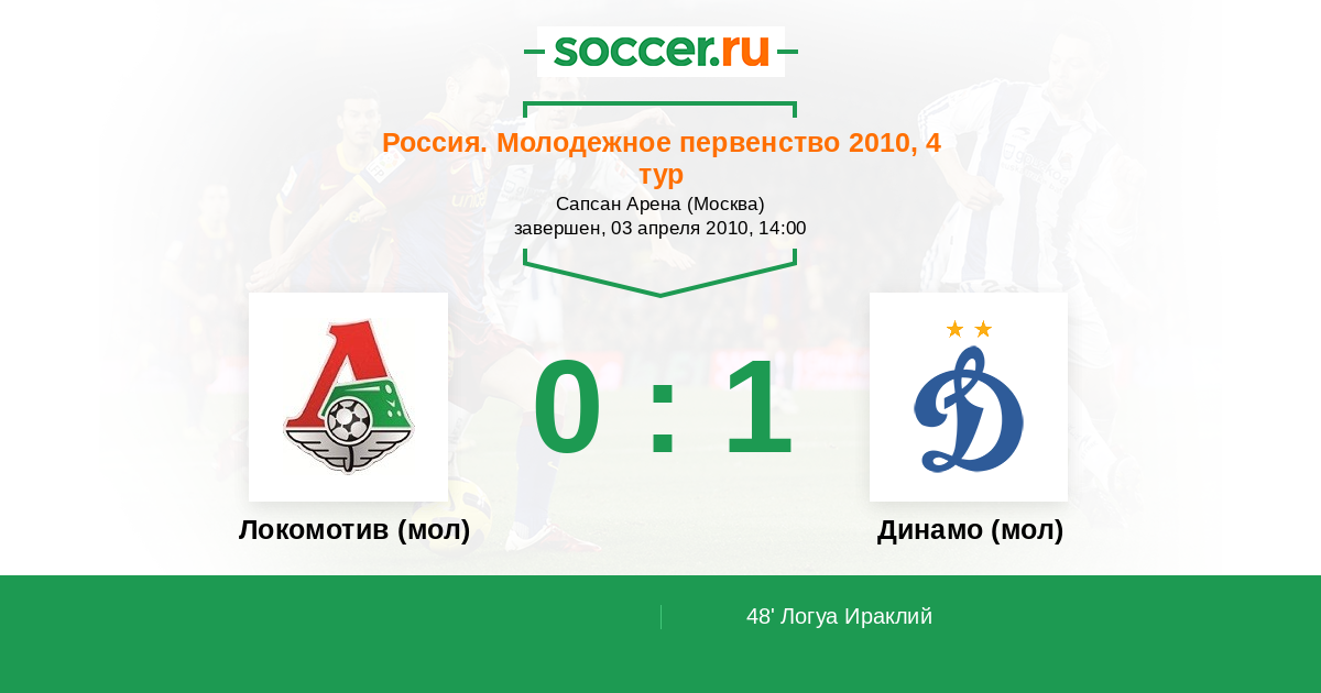 Протокол матча Локомотив (мол) против Динамо (мол)