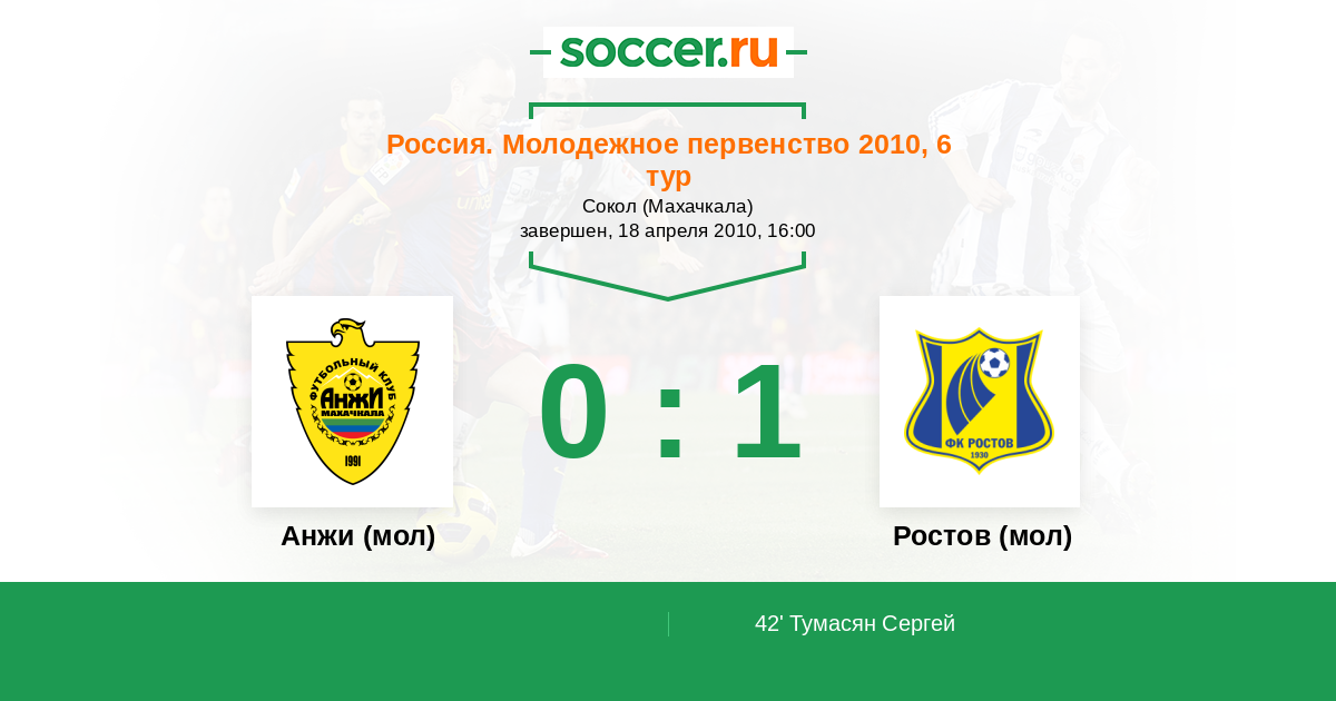 Протокол матча Анжи (мол) против Ростов (мол)