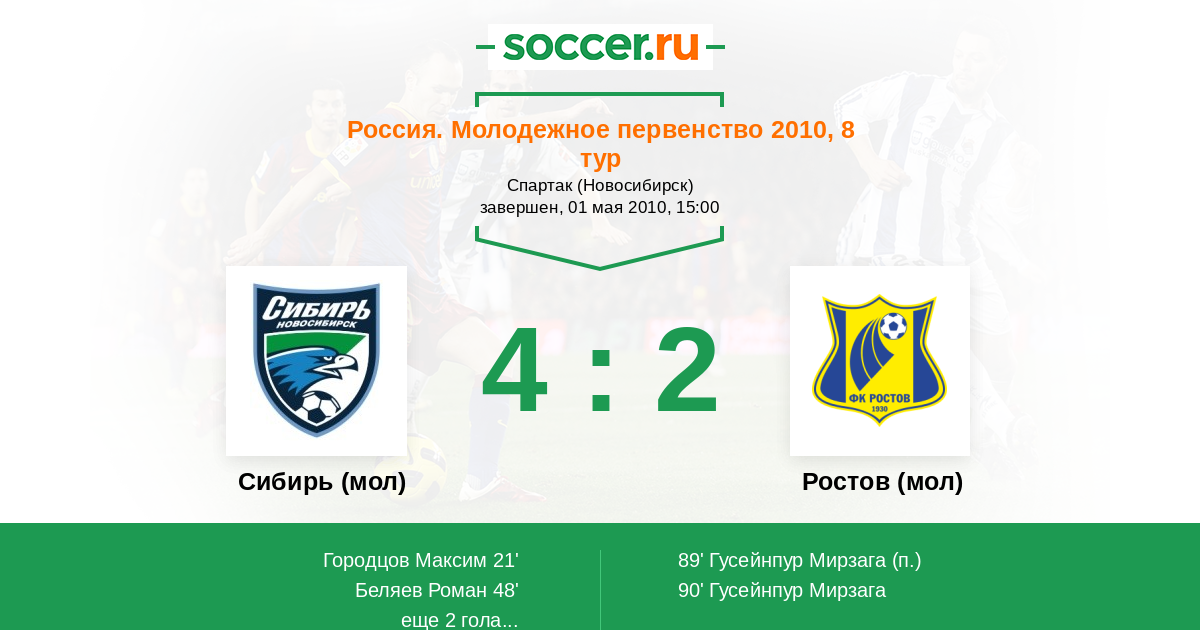 Протокол матча Сибирь (мол) против Ростов (мол)