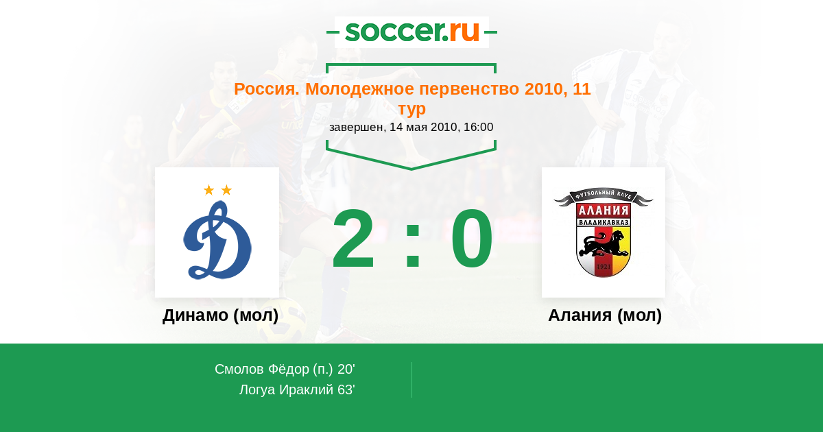 Протокол матча Динамо (мол) против Алания (мол)