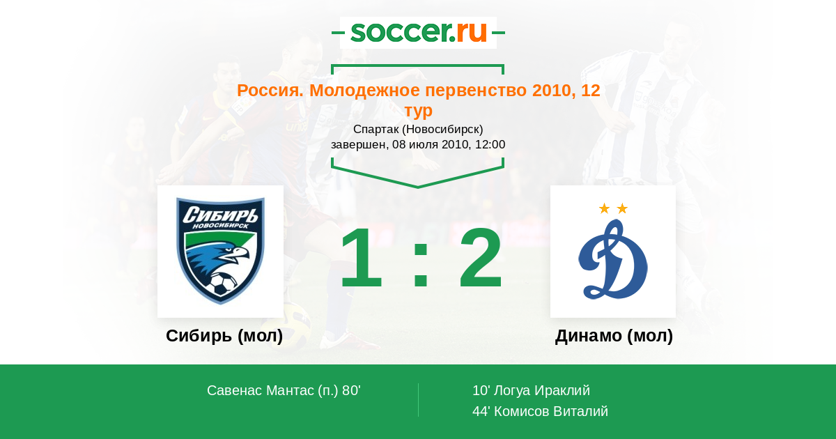 Протокол матча Сибирь (мол) против Динамо (мол)
