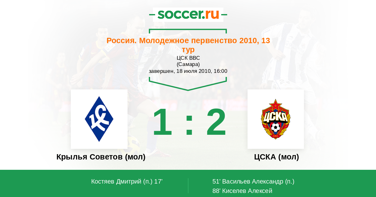 Протокол матча Крылья Советов (мол) против ЦСКА (мол)
