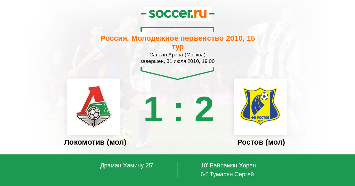 Протокол матча Локомотив (мол) против Ростов (мол)