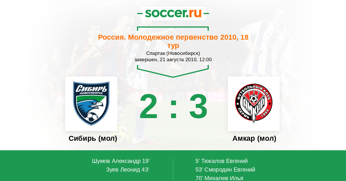Протокол матча Сибирь (мол) против Амкар (мол)