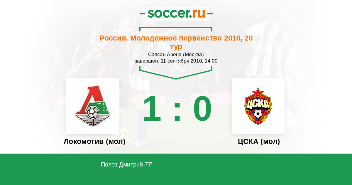 Протокол матча Локомотив (мол) против ЦСКА (мол)