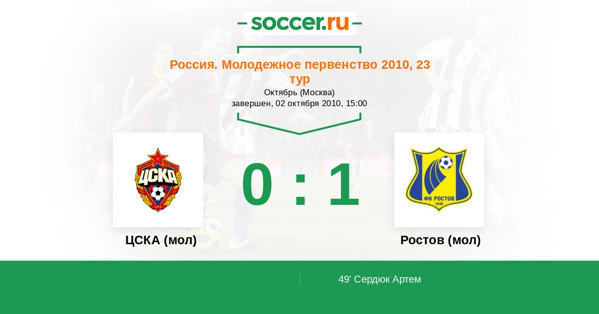 Протокол матча ЦСКА (мол) против Ростов (мол)