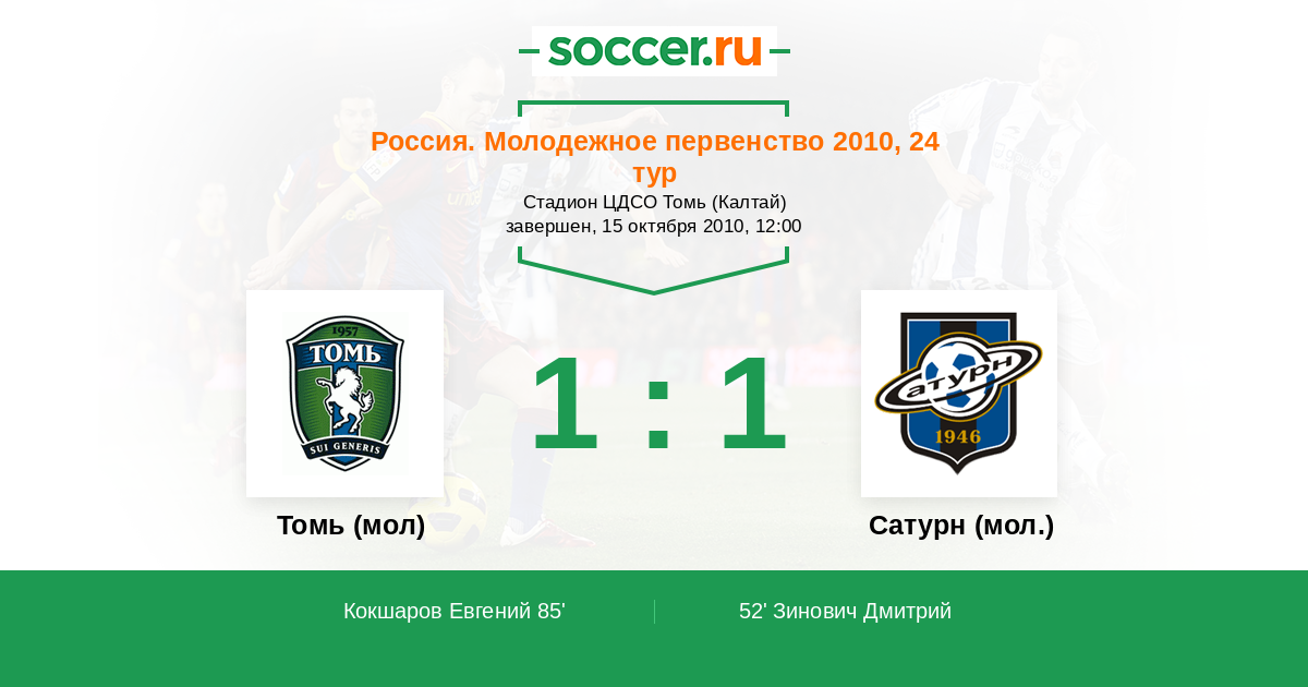 Протокол матча Томь (мол) против Сатурн (мол.)