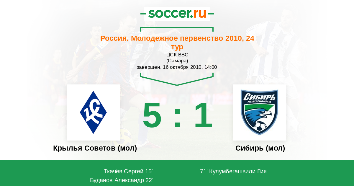 Протокол матча Крылья Советов (мол) против Сибирь (мол)