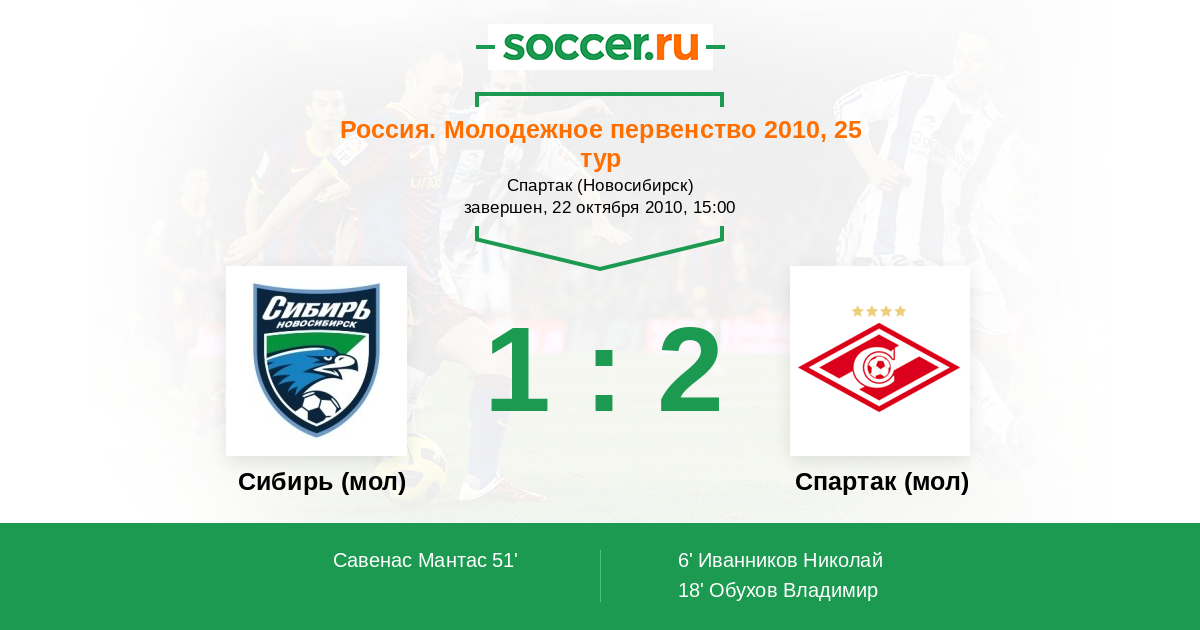 Протокол матча Сибирь (мол) против Спартак (мол)