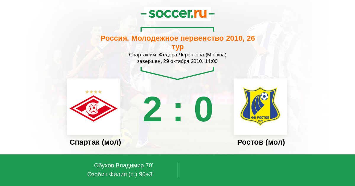 Протокол матча Спартак (мол) против Ростов (мол)