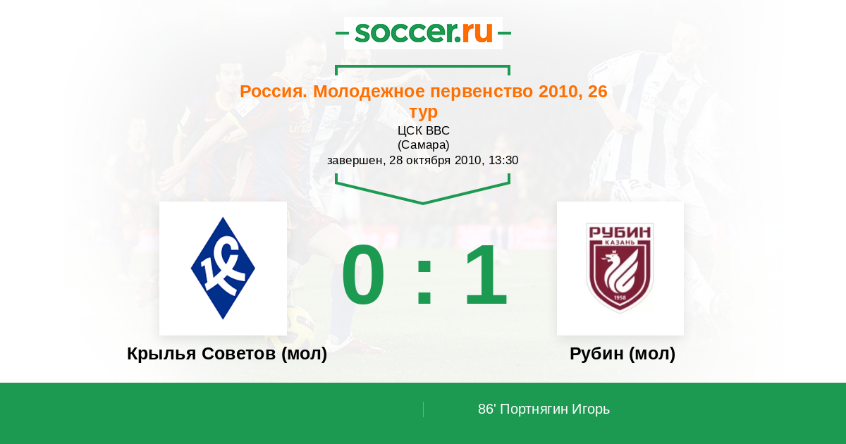 Протокол матча Крылья Советов (мол) против Рубин (мол)