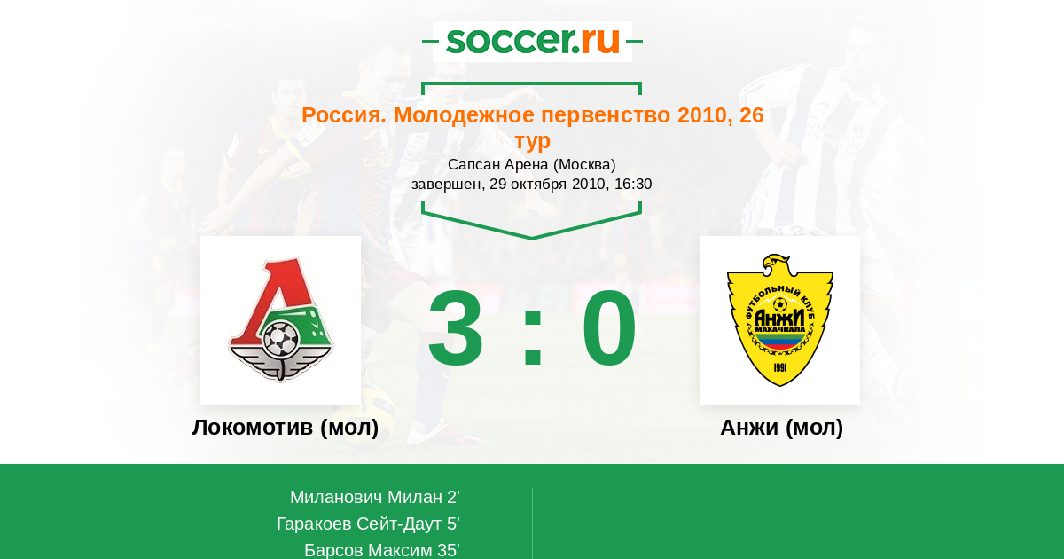 Протокол матча Локомотив (мол) против Анжи (мол)