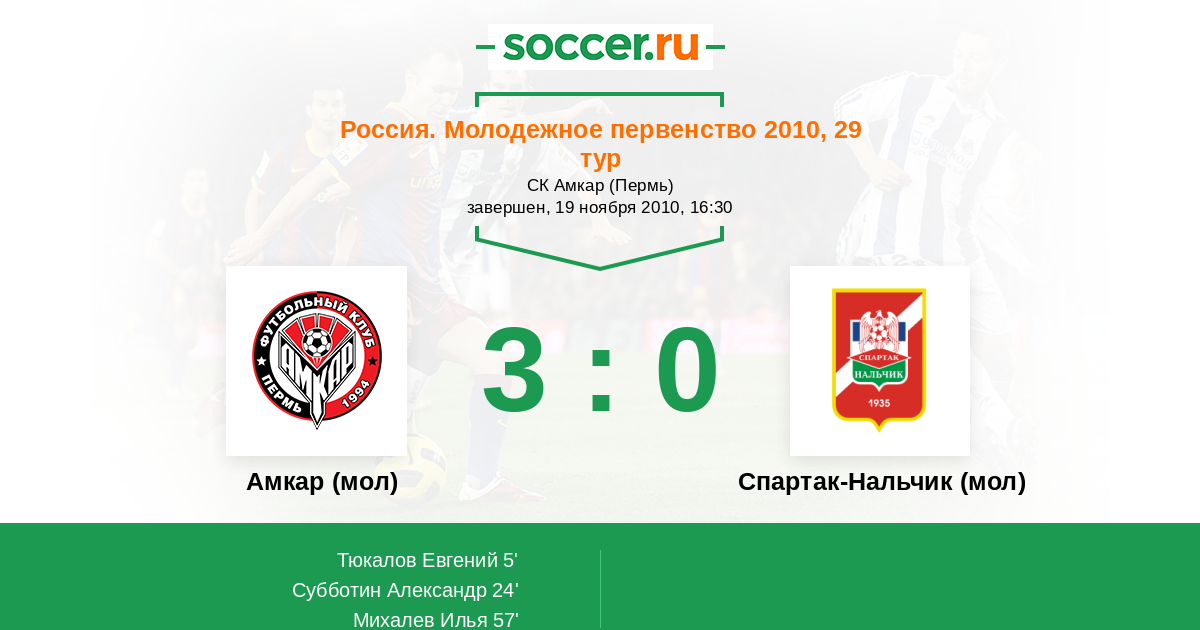 Протокол матча Амкар (мол) против Спартак-Нальчик (мол)