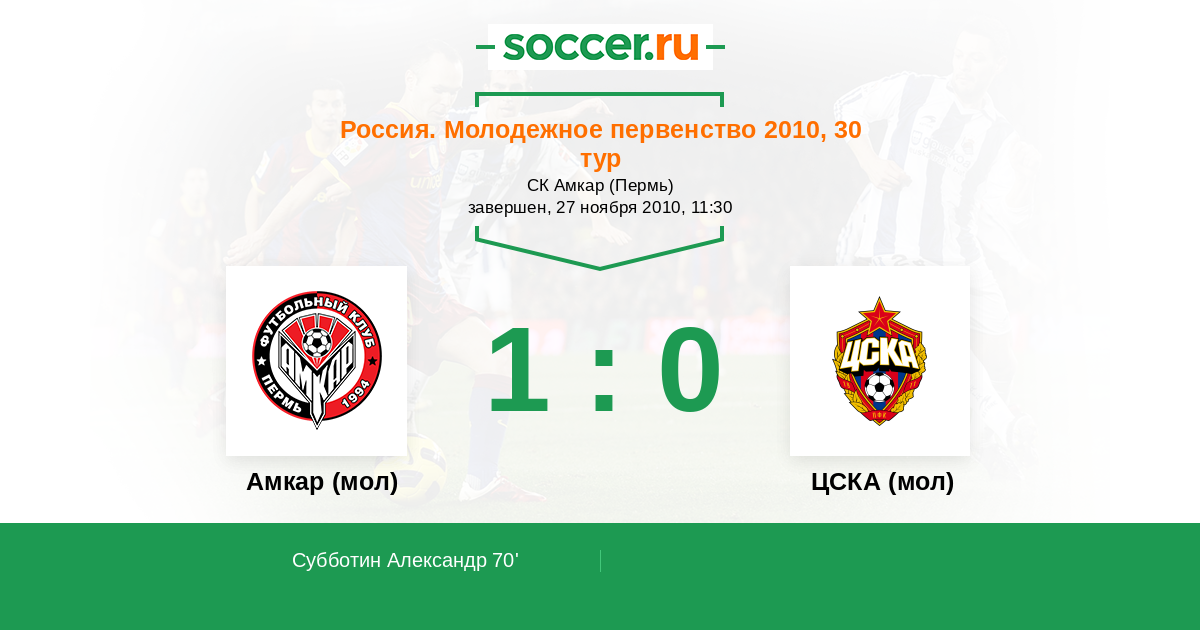 Протокол матча Амкар (мол) против ЦСКА (мол)