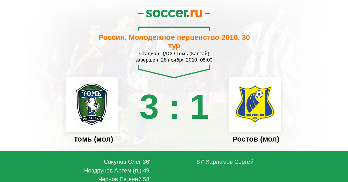 Протокол матча Томь (мол) против Ростов (мол)