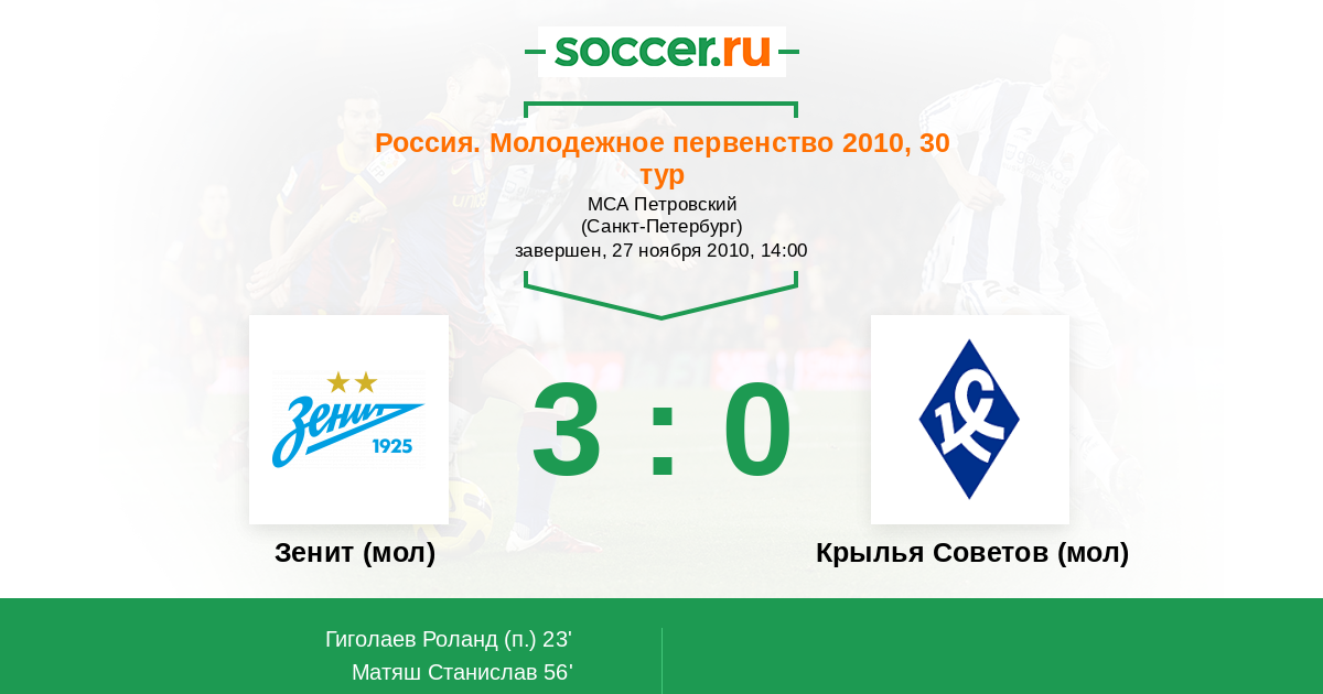 Протокол матча Зенит (мол) против Крылья Советов (мол)