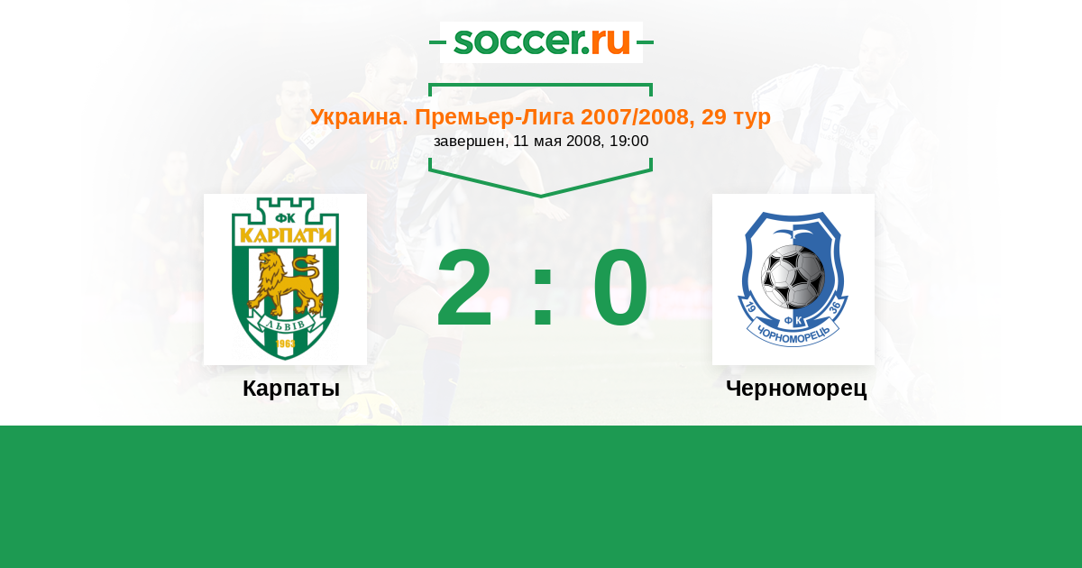 Украина. Премьер-Лига 26.10.2007 Черноморец Логотип футбольный клуб Черноморец (Одесса) 4:0 Логотип футбольный клуб Карпаты (Львов) Карпаты