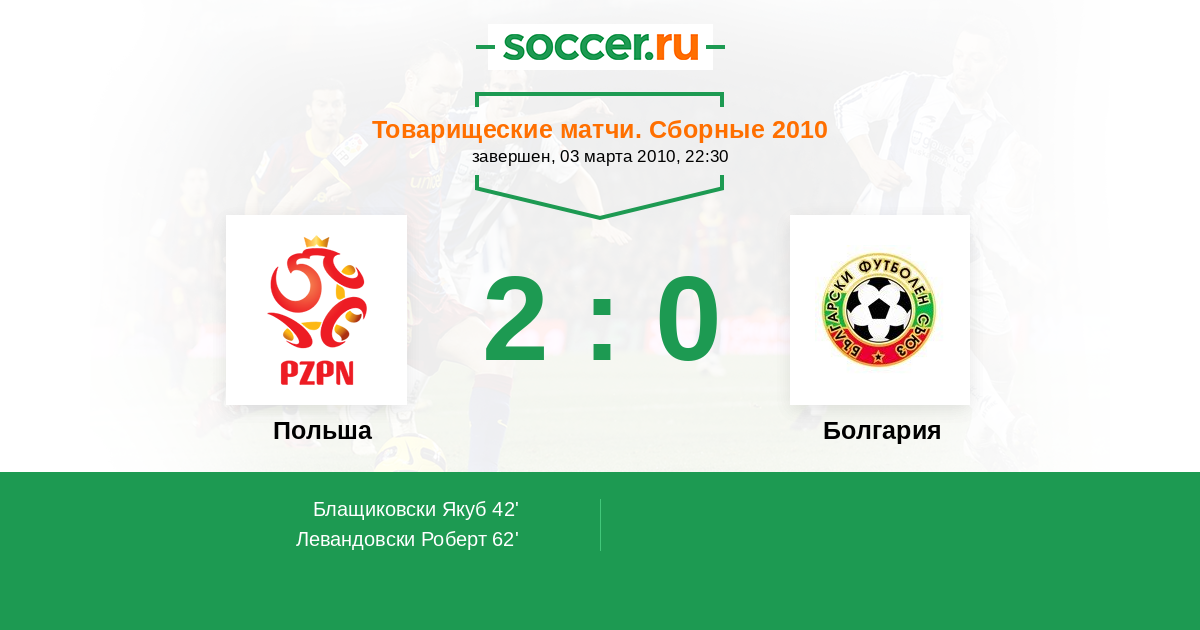 Протокол матча Польша против Болгария