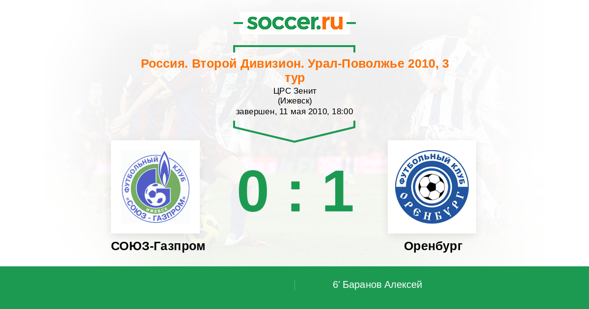 Протокол матча СОЮЗ-Газпром против Газовик