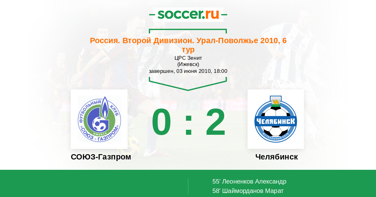 Протокол матча СОЮЗ-Газпром против Челябинск