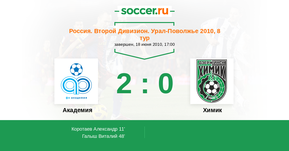 Протокол матча Академия против Химик