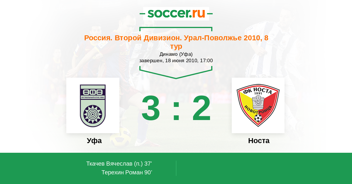 Протокол матча Уфа против Носта