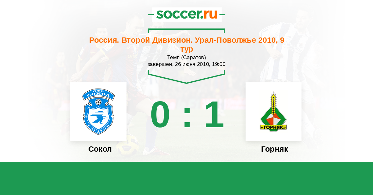 Протокол матча Сокол против Горняк