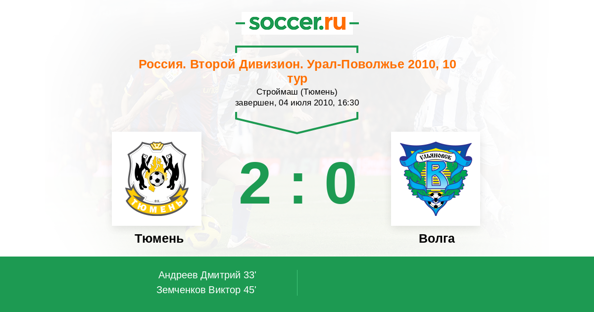 Протокол матча Тюмень против Волга