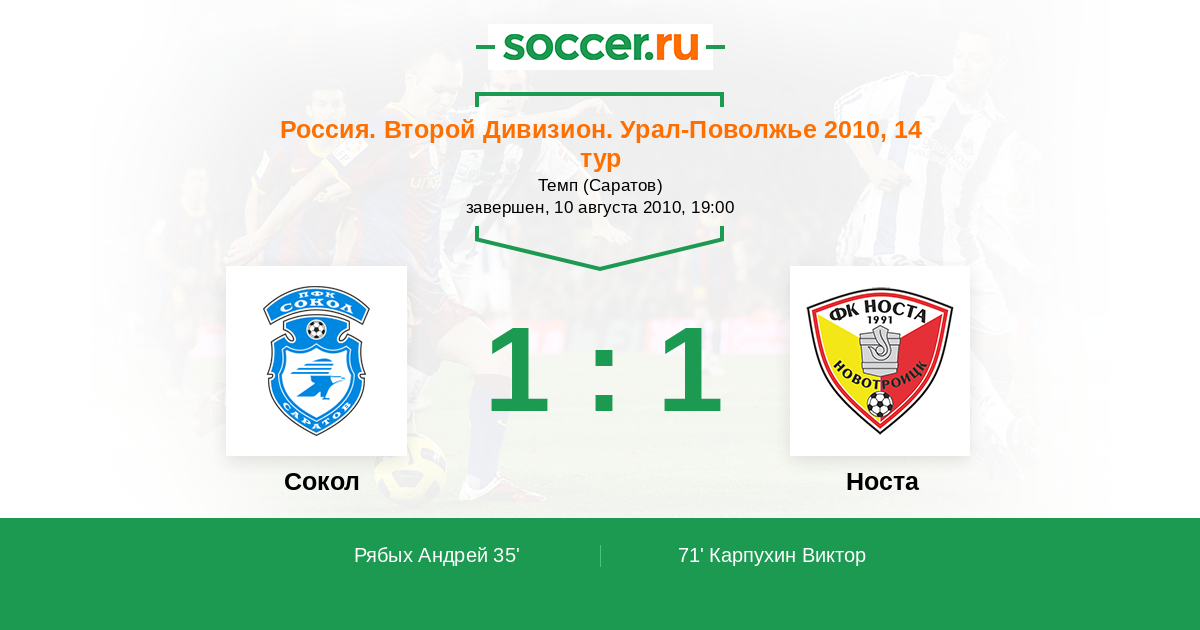 Протокол матча Сокол против Носта