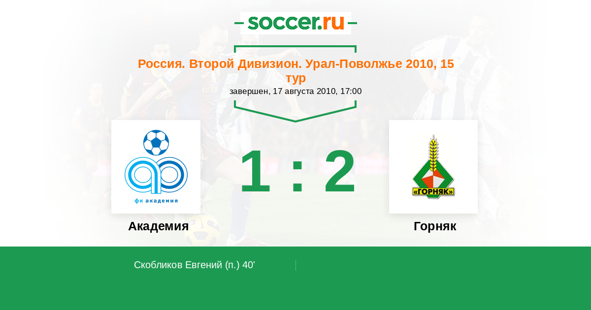 Протокол матча Академия против Горняк