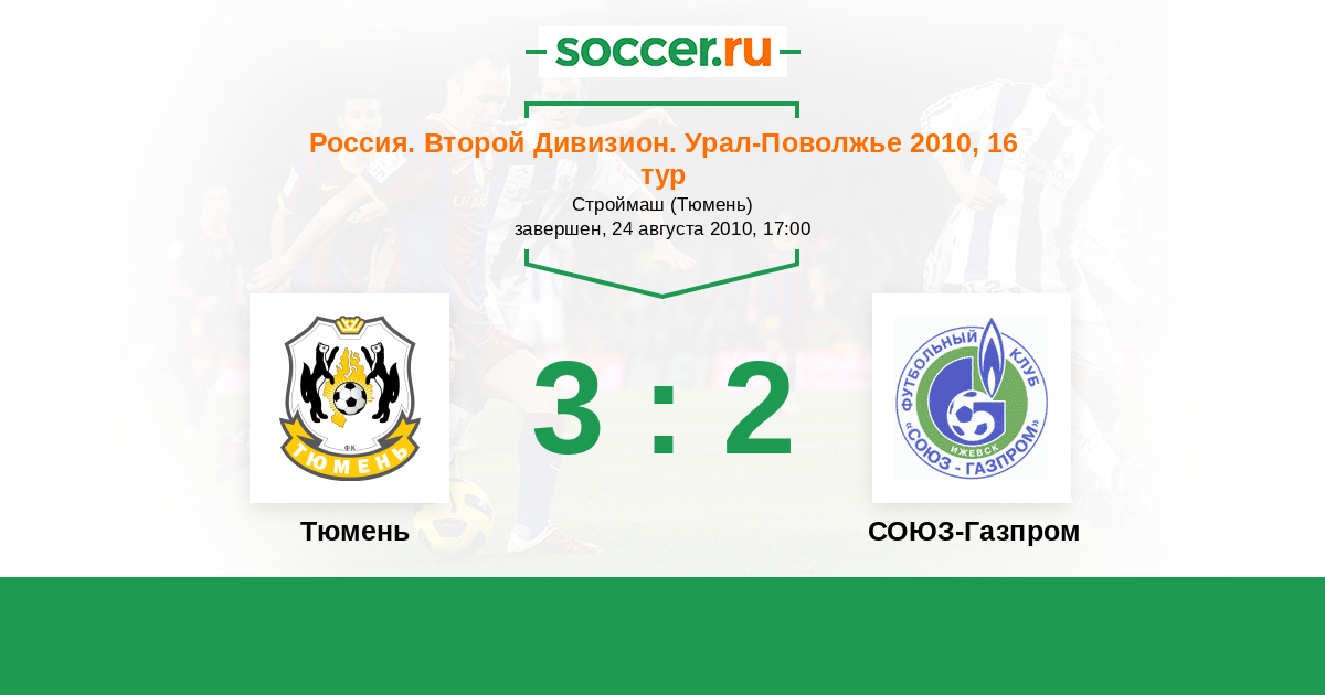 Россия. Вторая лига. Группа 4 19.05.2010 СОЮЗ-Газпром Логотип футбольный клуб СОЮЗ-Газпром (Ижевск) 0:1 Логотип футбольный клуб Тюмень Тюмень