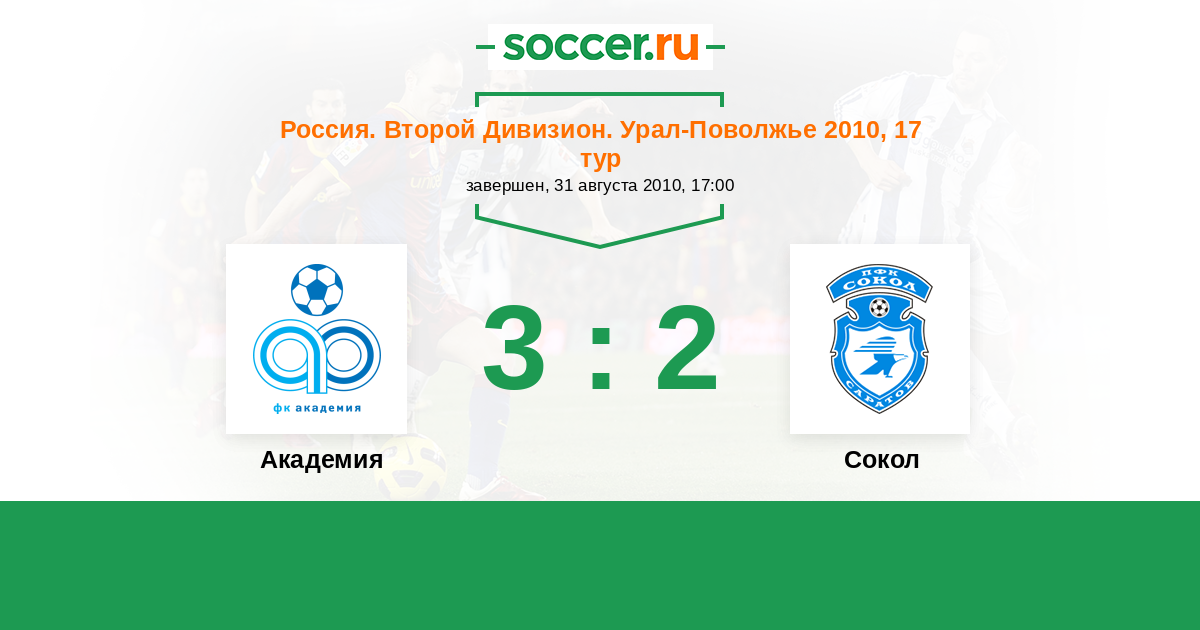 Россия. Вторая лига. Группа 4 27.05.2010 Сокол Логотип футбольный клуб Сокол (Саратов) 3:1 Логотип футбольный клуб Академия (Тольятти) Академия