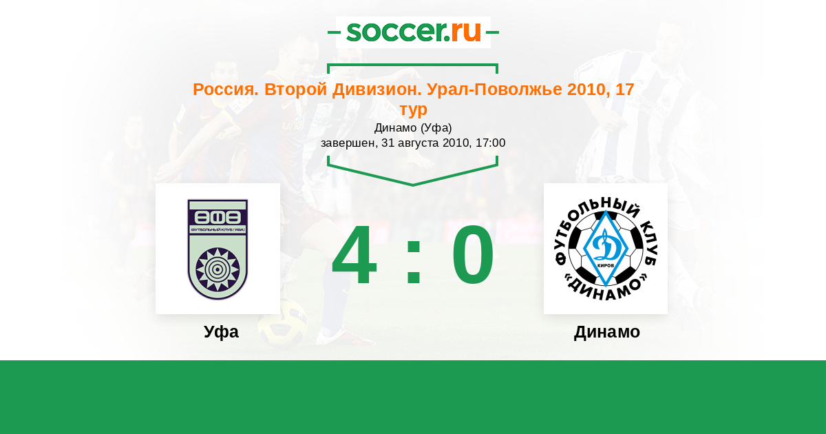 Россия. Вторая лига. Группа 4 05.06.2011 Уфа Логотип футбольный клуб Уфа 1:0 Логотип футбольный клуб Динамо Киров Динамо Киров
