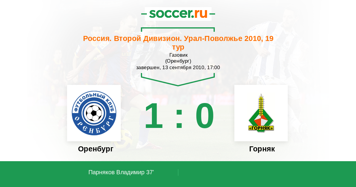 Протокол матча Газовик против Горняк