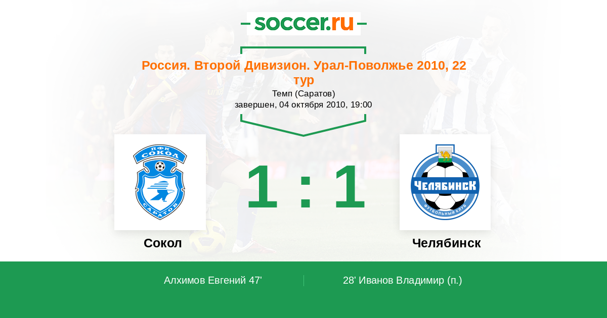Протокол матча Сокол против Челябинск