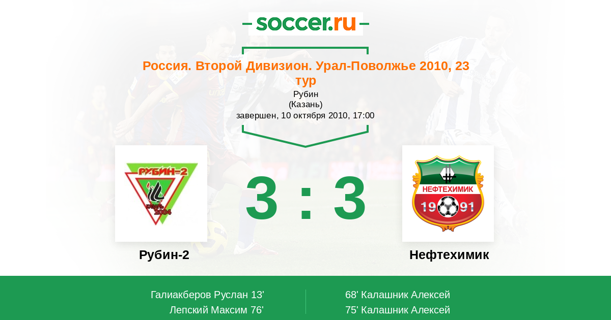 Протокол матча Рубин-2 против Нефтехимик