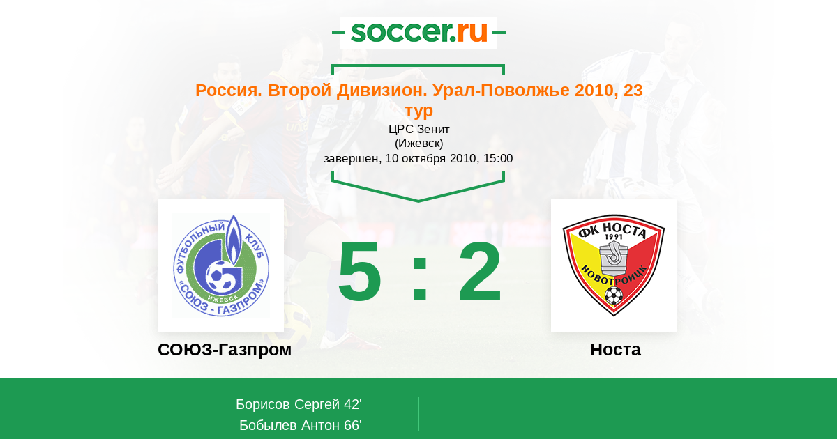 Протокол матча СОЮЗ-Газпром против Носта