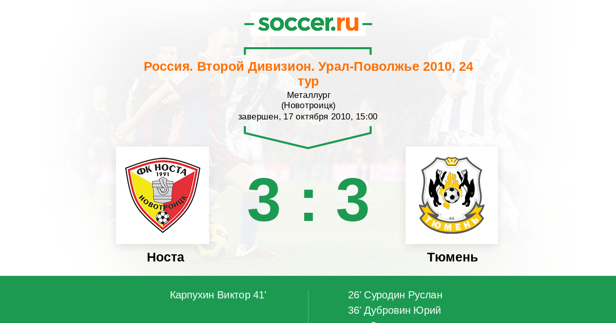 Протокол матча Носта против Тюмень