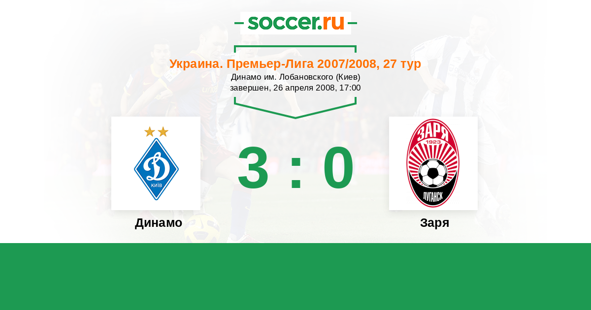 Украина. Премьер-Лига 18.04.2011 Динамо Логотип футбольный клуб Динамо (Киев) 2:0 Логотип футбольный клуб Заря (Луганск) Заря