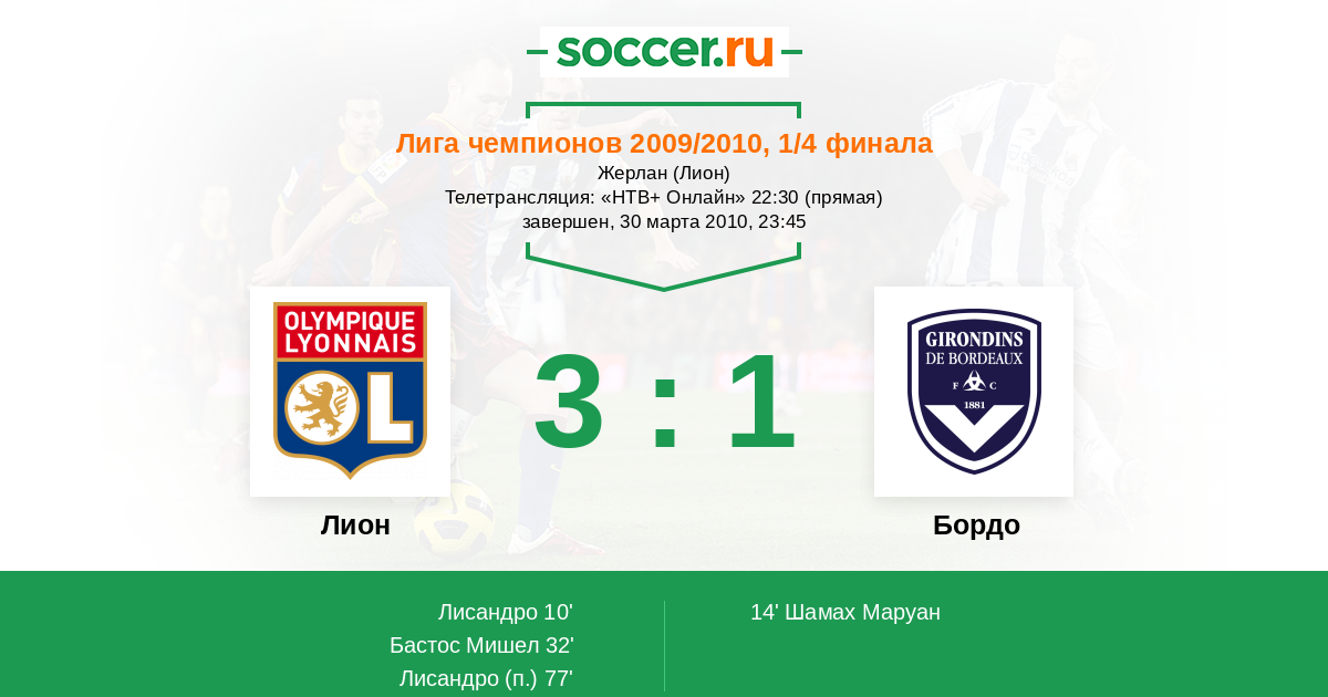 77' (3:1) Лисандро (9)