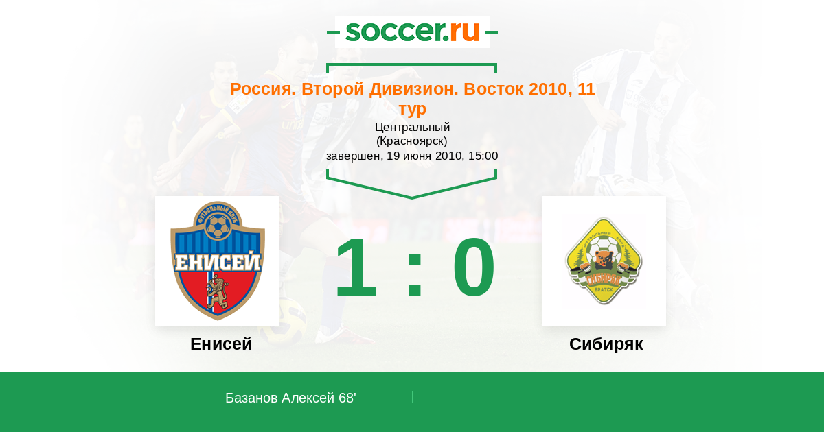 Протокол матча Енисей против Сибиряк