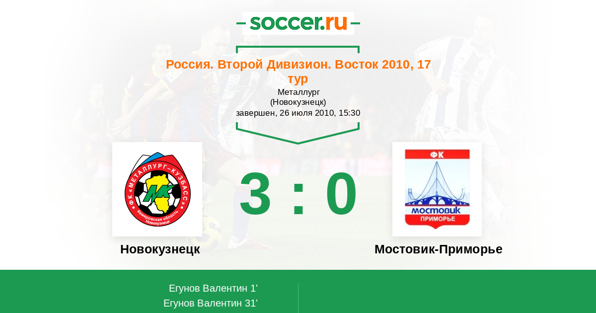 Протокол матча Металлург-Кузбасс против Мостовик-Приморье
