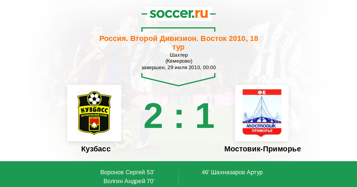 Протокол матча Кузбасс против Мостовик-Приморье