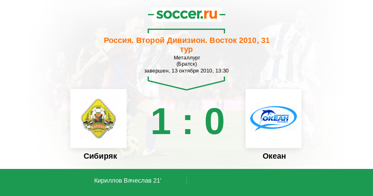 Протокол матча Сибиряк против Океан