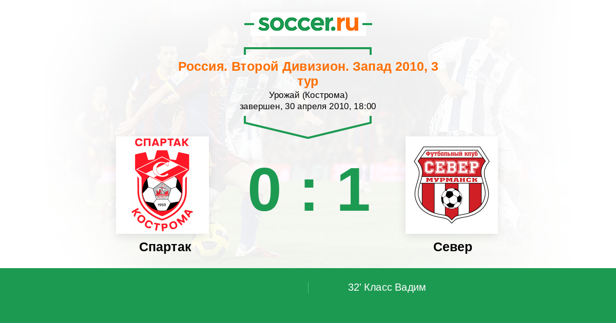 Протокол матча Спартак Кострома против Север