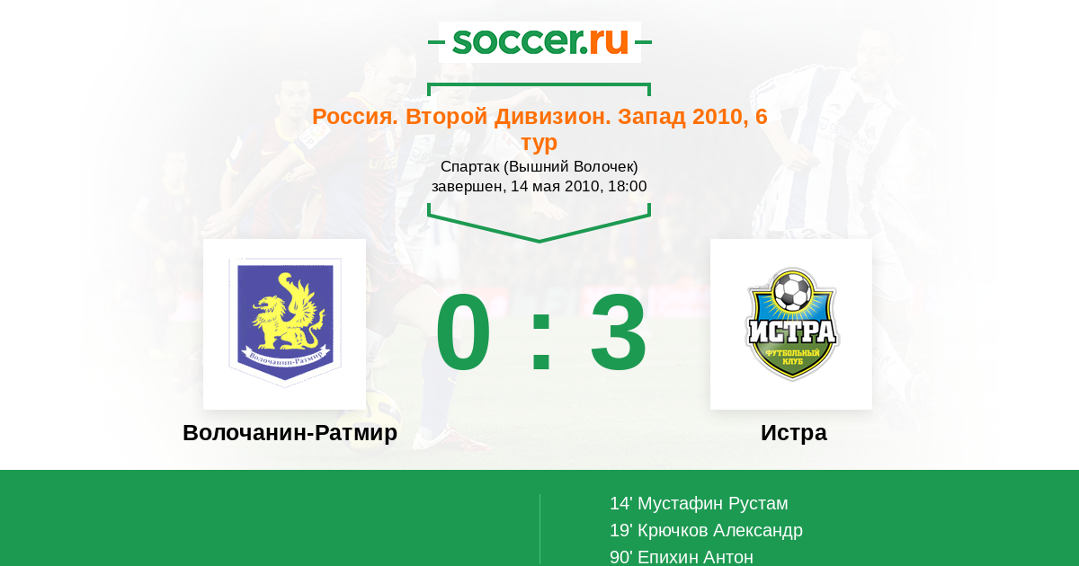 Протокол матча Волочанин-Ратмир против Истра