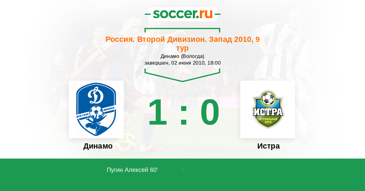 Протокол матча Динамо Вологда против Истра