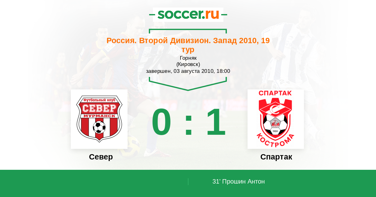 Протокол матча Север против Спартак Кострома
