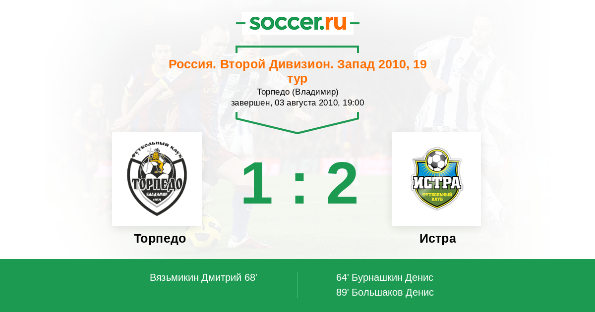 Протокол матча Торпедо против Истра
