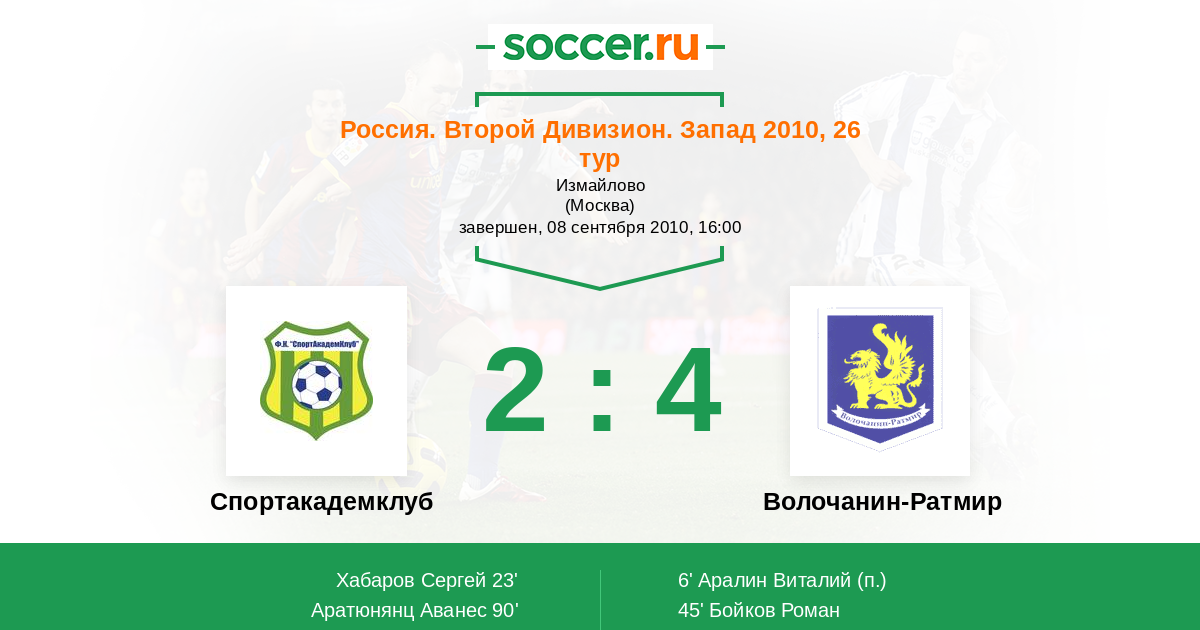 Протокол матча Спортакадемклуб против Волочанин-Ратмир